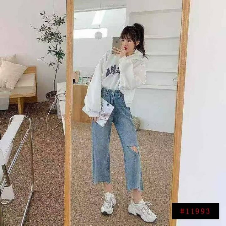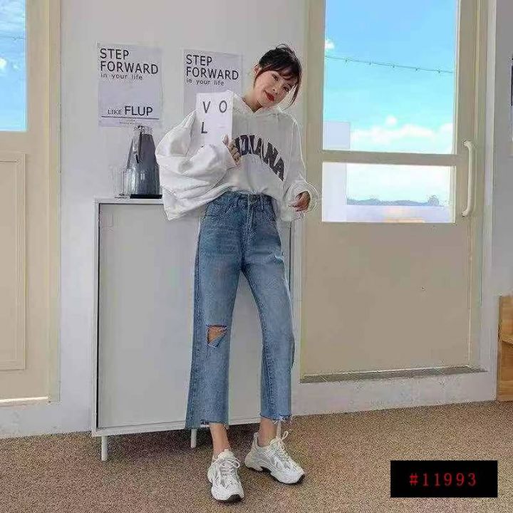 春夏季新款大码女装设计款破洞牛仔裤,独立包装带吊牌...