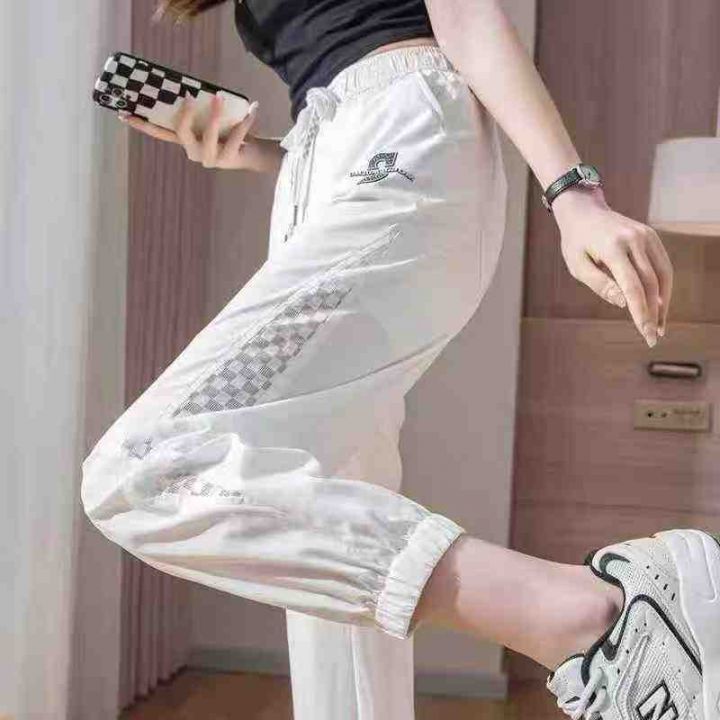 [月亮]:网纱镂空拼接/束脚抽绳休闲裤