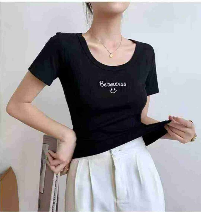 全清价6.8螺纹短袖t恤女夏时尚刺绣百搭修身辣妹上衣,...