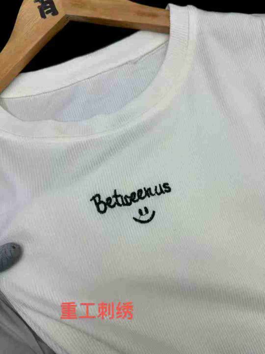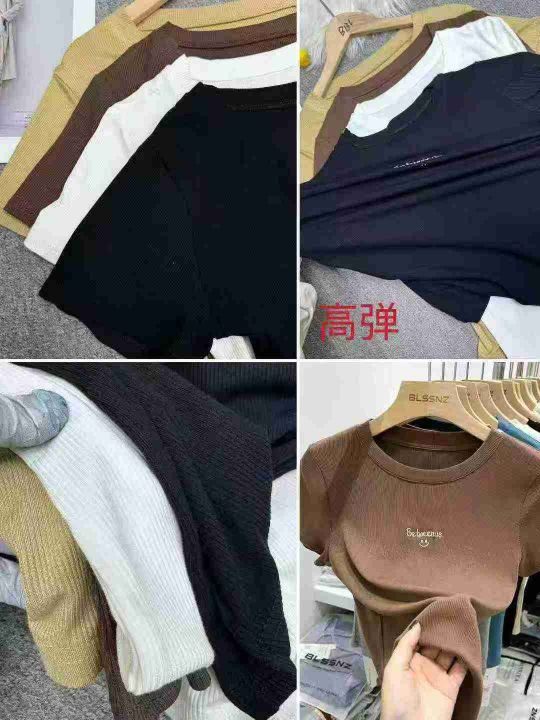 螺纹短袖t恤女夏时尚刺绣百搭修身辣妹上衣,独立包装,均码,整款四色,数量200件,大货黑白为主,高弹,货号114#13。 货号:24862