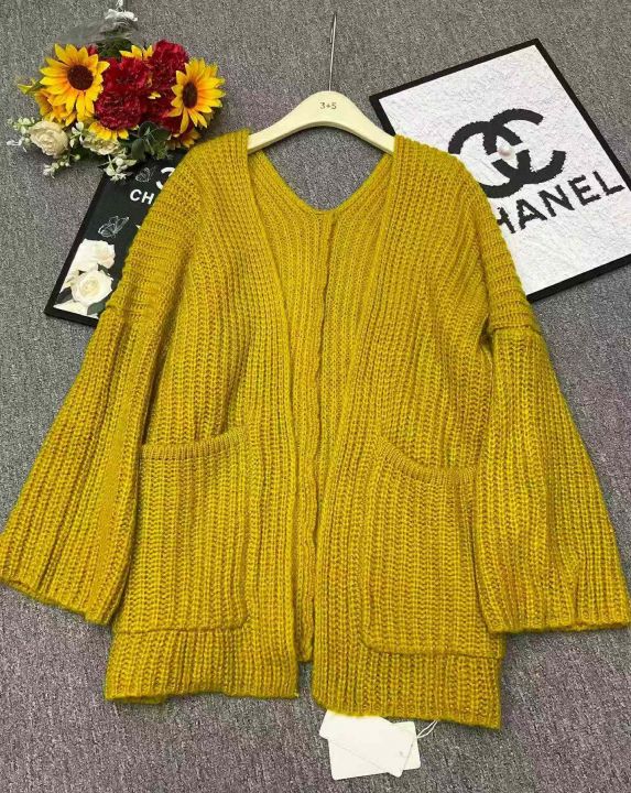 品牌原单韩系宽松净版简约粗针大口袋毛衣开衫,独立包...