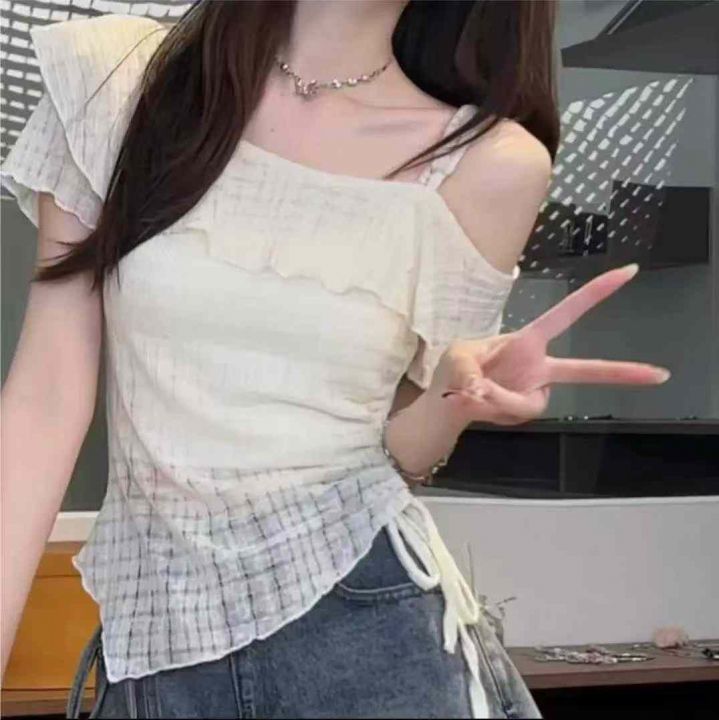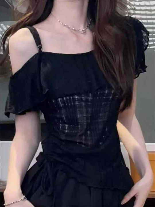 法式荷叶边吊带露肩短袖245件7.8