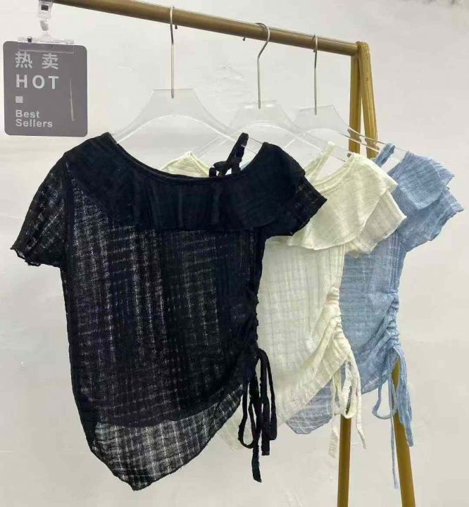 法式荷叶边吊带露肩短袖245件7.8面料柔软舒适,抽绳设...