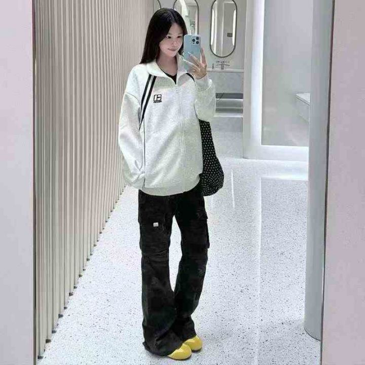 国潮立领运动卫衣外套女男秋季新款撞色拼接夹克宽松拉链开衫上衣,数量223...