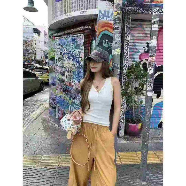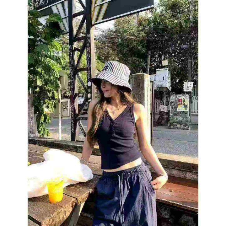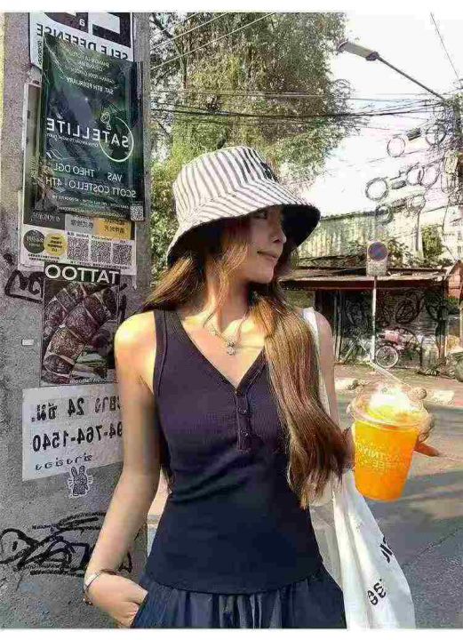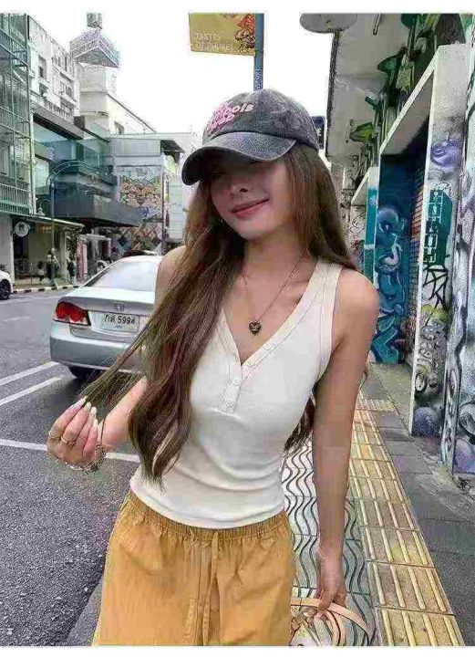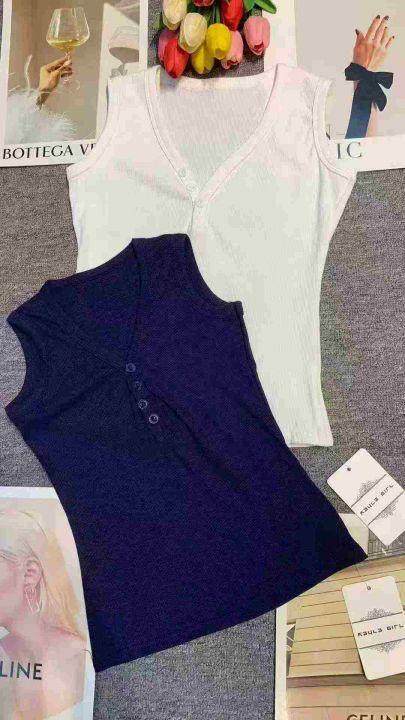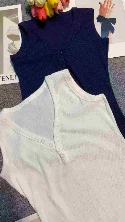 韩版气质V领扭扣无袖吊带上衣,[爱心]90件左右,款号#1128,码数S-XL,穿70-120斤,万佳档口货,原包装️无瑕疵,[666]实体店品质