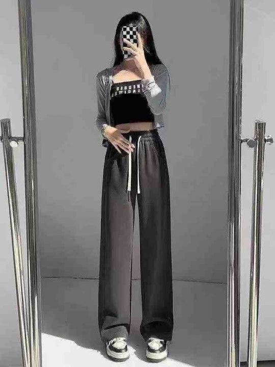 1217条美式抽绳长裤子女休闲ins宽松直筒高腰阔腿卫裤,整款3个颜色,独立包...