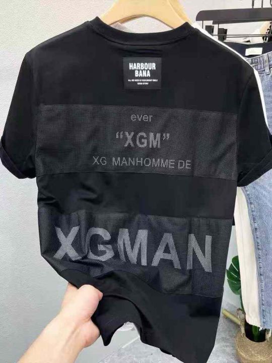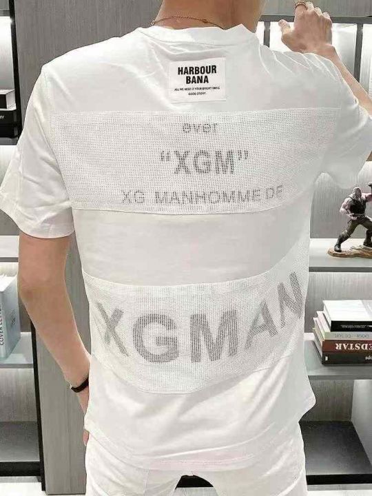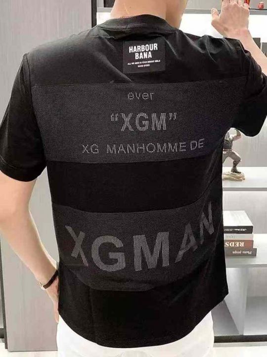 欧洲站棉质网格短袖t恤男士夏季新款潮牌高端百搭上衣...