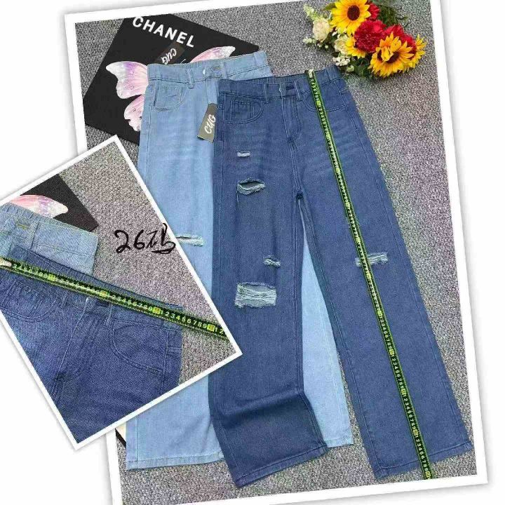 春夏季新款品牌原单宽松半松紧腰破洞设计款直筒阔腿牛仔裤,独立包装带吊牌,图片款,码数26--36码双码一首码,2366件,全清9.9元超低价秒杀!分货加一!