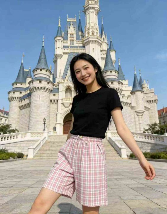 高腰抽绳设计,宽松阔腿格子五分裤版型,裤身有自然垂...
