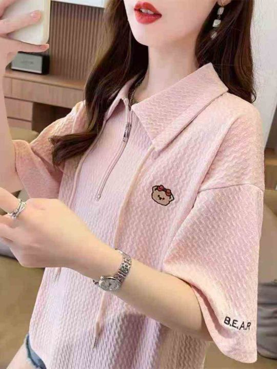 ☕️polo领短袖t恤女新款夏季韩版宽松大码设计感小众...