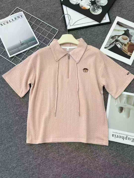☕️polo领短袖t恤女新款夏季韩版宽松大码设计感小众短袖上衣301件全清11.8元 分货12.8元,码数S到XXL,单款3色,独立包装。