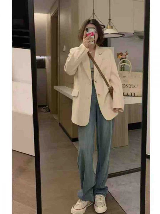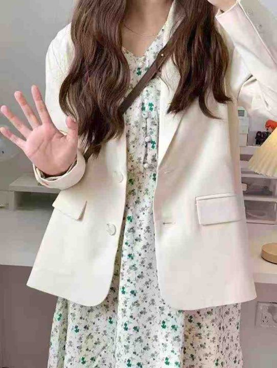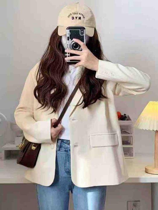 100件杏色西装外套女小个子春秋季新款今年流行高级感炸街宽松休闲西服,单款单色,独立包装,码数S一XL,全清13.8。 货号:24862