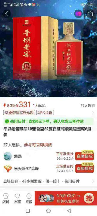 12箱平坝老窖臻品--10,八大名酒之一,52度,兼香型白酒,一箱6瓶,带三个手提袋,精包装礼盒!10箱起发170元一箱,1箱起发180元,。 货号:29195