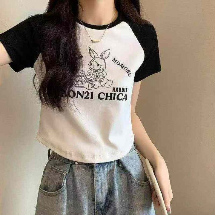 夏季新款美式撞色插肩复古卡通水印花针织短袖T桖,独立包装,均码面料柔软...