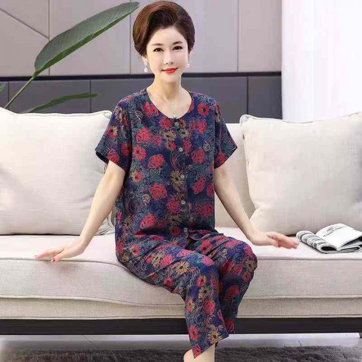码数1一5码(S一2XL),数量290套左右,全部独立包装,小整杂系列,全部妈妈长裤短袖套装,风格一致。 货号:24862