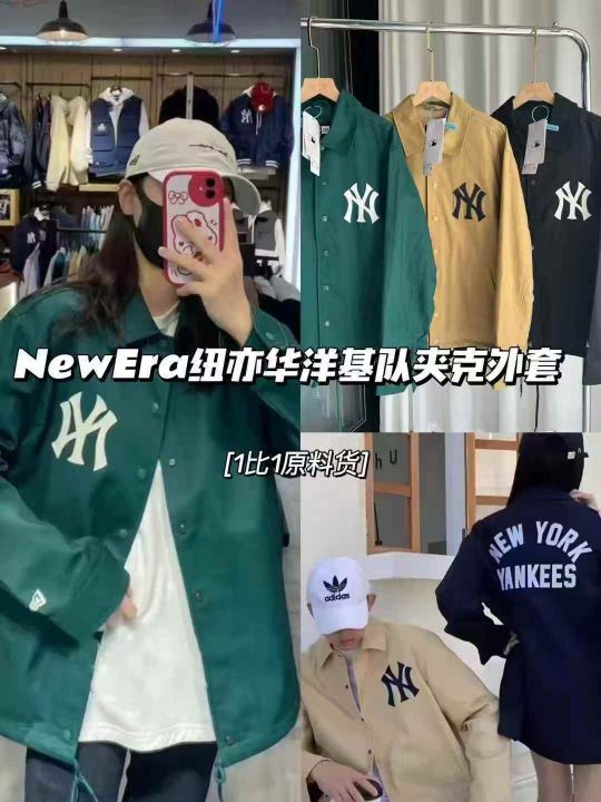 New Era纽亦华MLB男女夹克NY外套MLB针织帆布教练夹克风衣,NY洋基队贴布logo 卡其色 黑色 绿色 S-2XL 700件 清货!。 货号:33064