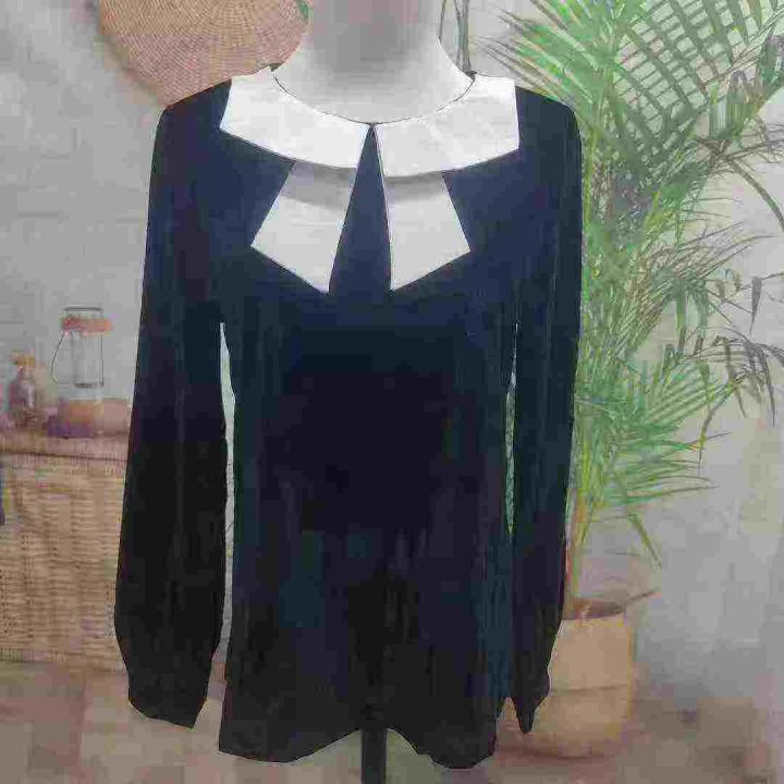 4.8元[爱心][爱心] 华丽奢侈荷叶边金丝绒衬衫上衣,独立包装,白色衣领串色,码数s-2xl,数量170件左右。