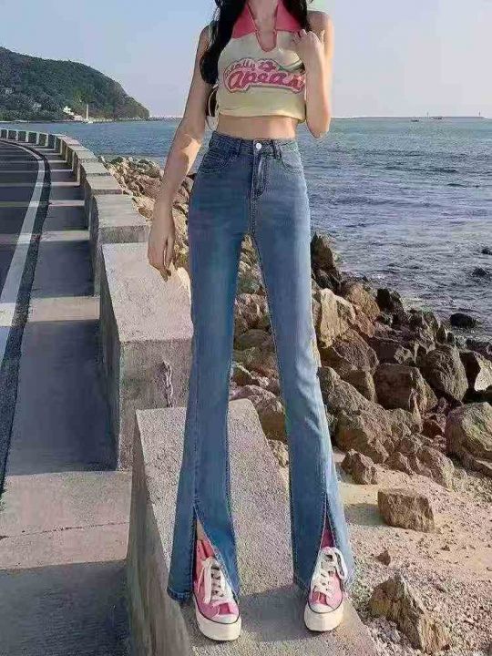 ☕️高腰开叉牛仔裤女夏季新款小个子显瘦微喇叭牛仔裤900条全清9.8元,分货...