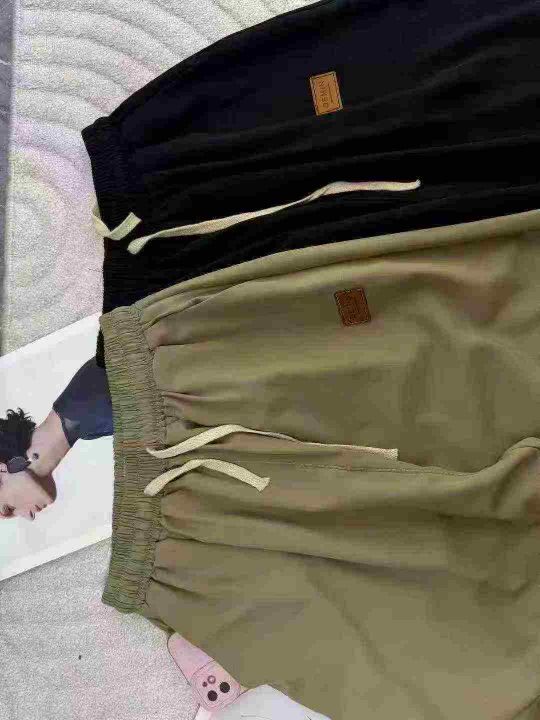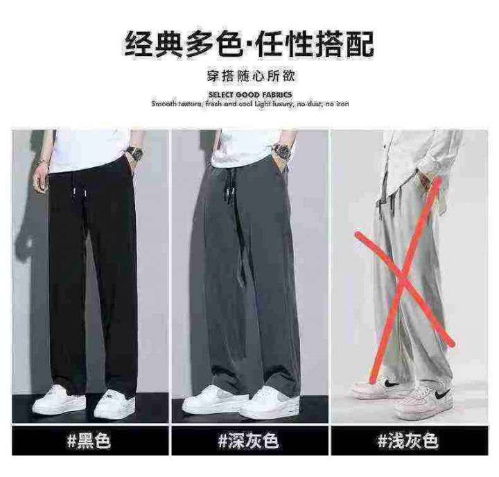 外穿夏季冰丝薄款速干透气休闲裤男生运动垂感直筒阔腿长裤,全部独立拉链原包装,基本都是图一款,尺码M到4XL,黑色占比超过50%,货品干净,版型漂亮
