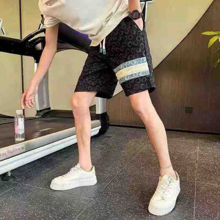 7.8清1072件痞帅高级感男士休闲宽松夏季薄款提花中裤五分裤!单款两色~黑~白!码数:M~3XL!独立包装!货品干净漂亮!