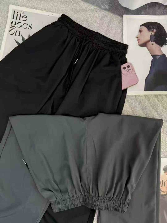 外穿夏季冰丝薄款速干透气休闲裤男生运动垂感直筒阔腿长裤,全部独立拉链原包装,基本都是图一款,尺码M到4XL,黑色占比超过50%,货品干净,版型漂亮