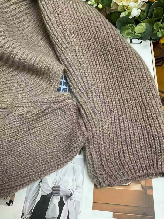 春秋新款韩系宽松慵懒风设计感不规则粗针套头毛衣,独...
