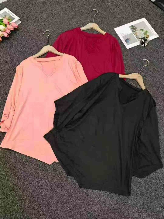 全清2.9元,分货+1慵懒夏季上衣中长款七分纯色大码黑...