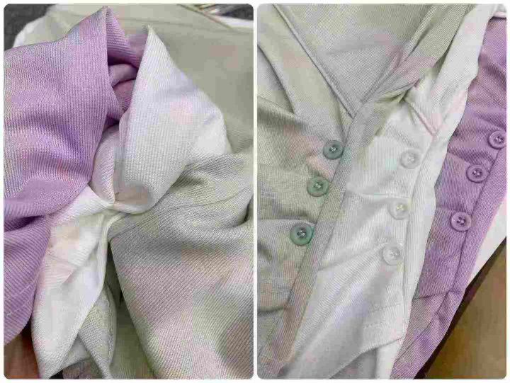 褶皱收腰,纽扣装饰,