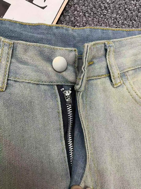 春秋新款男女同款复古蓝破洞设计款牛仔裤,独立包装带...