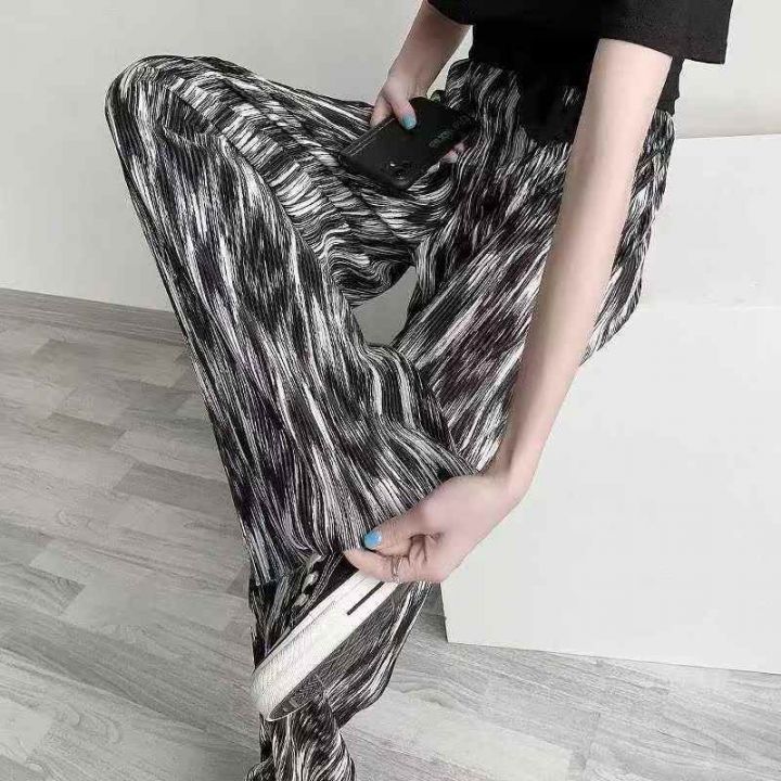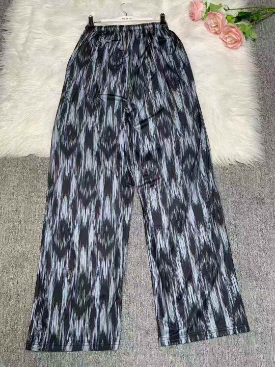 冰丝阔腿裤女夏薄款印花扎染高腰垂感宽松直筒休闲拖地裤160件,独立拉链袋包装,尺码L~2XL,全清福利价6.8元