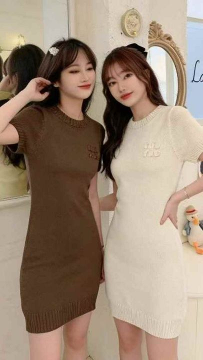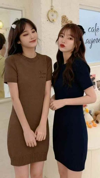 春夏季新款气质简约纯色刺绣小标圆领弹力修身显瘦针织连衣裙,独立包装,均码面料柔软舒适弹力大,196件,全清6.9元超低价秒杀!