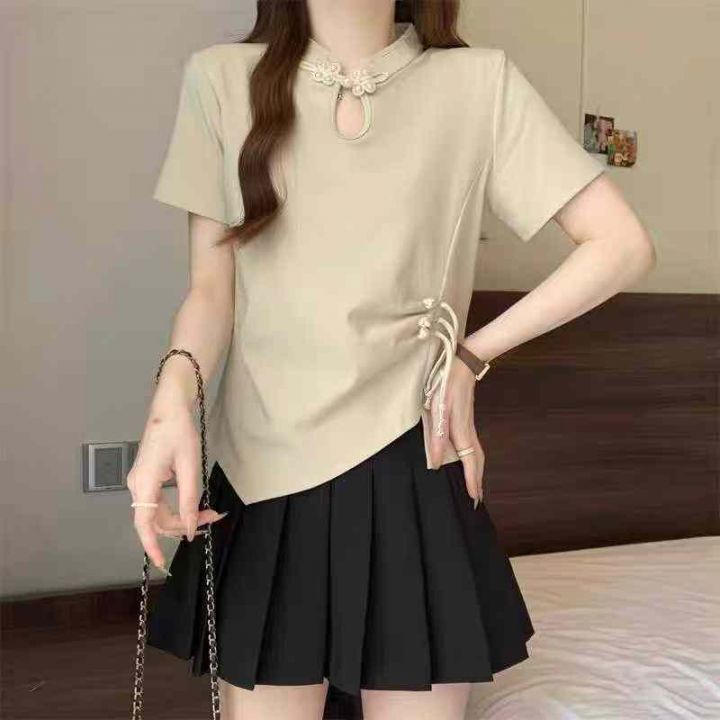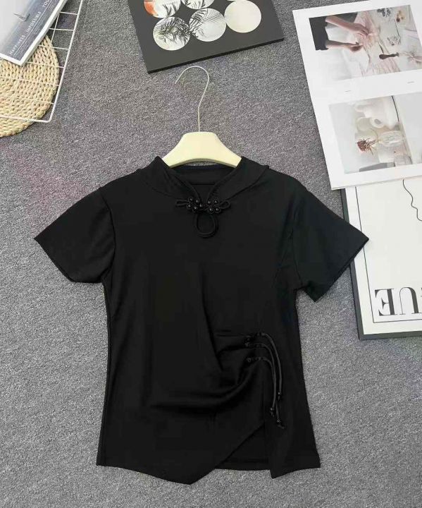 整单辣妹T恤☕️606件全清8.8元,分货9.9元,单款3色,独立包装,码数S到XL,新中式国风盘扣正肩短袖t恤女显瘦遮肉不规则短款上衣