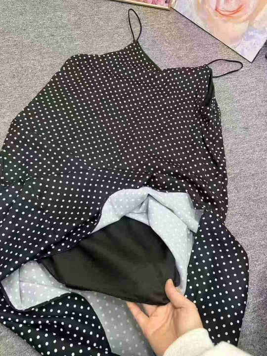 夏季新款高级感黑色波点连衣裙女宽松显瘦无袖气质法式长裙,整款单色,M-L.XL码,262件,裙长116厘米,独立包装,货品干净,7.8清,分货加1