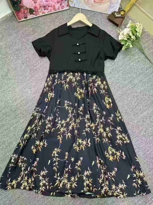 高档复古妈妈假两件连衣裙大码女装遮肉遮胯显瘦裙子,实拍为准,模特供参考,单款单色,2到5码,10件一个包装,有部分独立包装,340件左右,货品干净无瑕,7.8清,分货加1