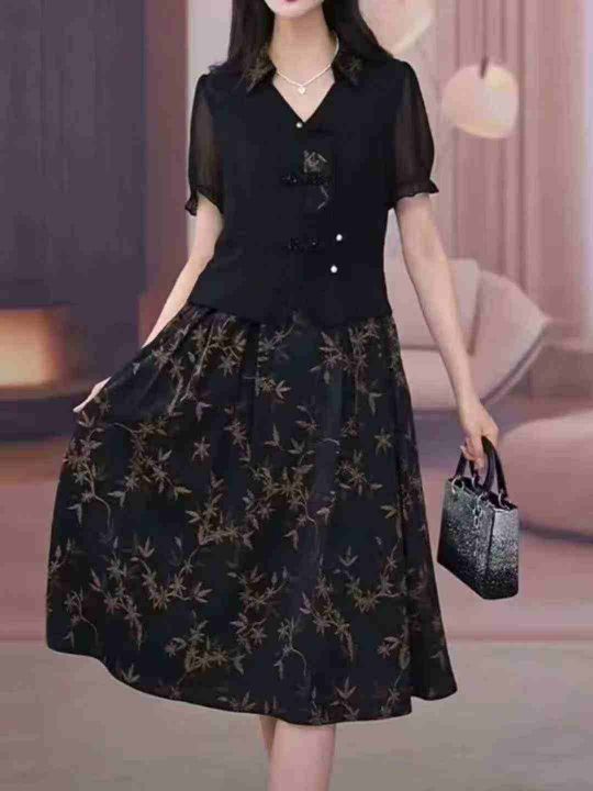 高档复古妈妈假两件连衣裙大码女装遮肉遮胯显瘦裙子,...