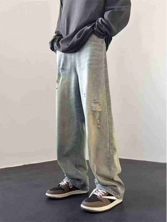 春秋新款男女同款复古蓝破洞设计款牛仔裤,独立包装带吊牌,码数S-XL码, ...