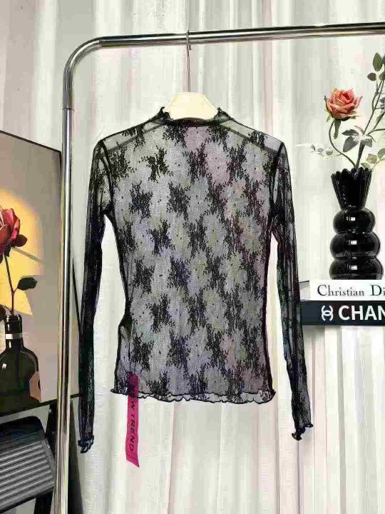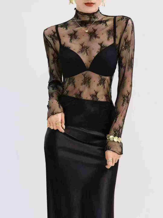 350件半高领蕾丝网纱打底衫女叠穿内搭透视薄纱独特别致上衣高级感薄,水溶蕾丝不易勾丝,高弹力,尺码S-XL,独立包装,零瑕疵!全清3.5
