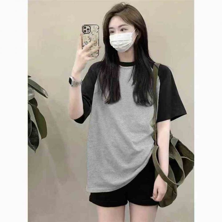 男女新款短袖韩版休闲潮牌大版宽松撞色插肩短袖t恤,10件一包装,3313件