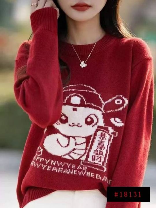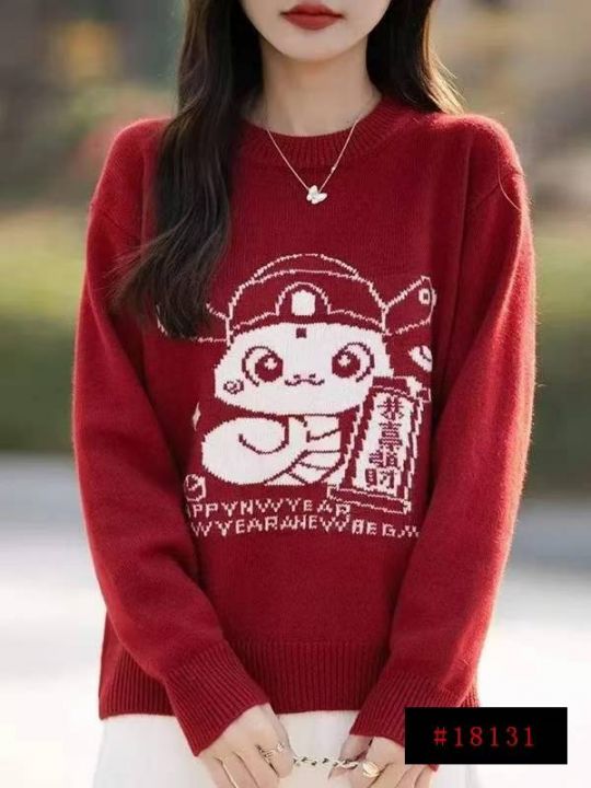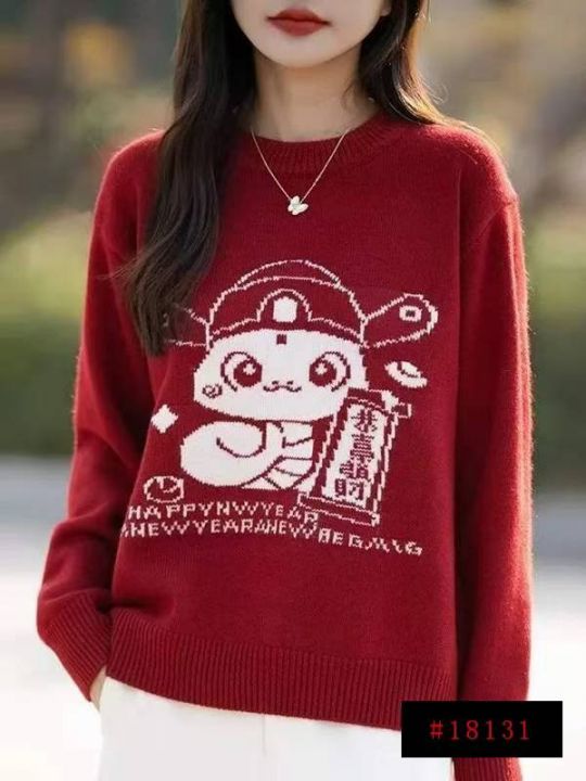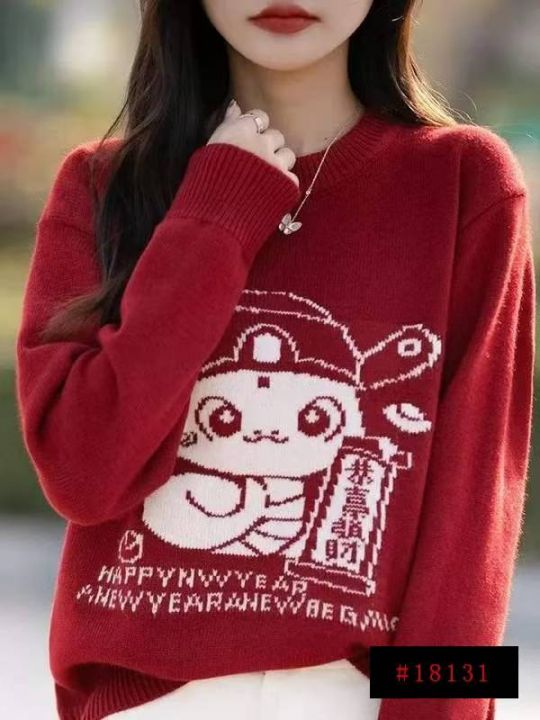 秋冬新款大码女装显瘦新年红圣诞卡通提花减龄设计感加厚套头毛衣,独立包装,码数M--2XL码,305件,全清8.9元超低价秒杀!分货加一!@_@