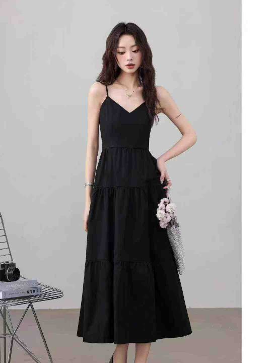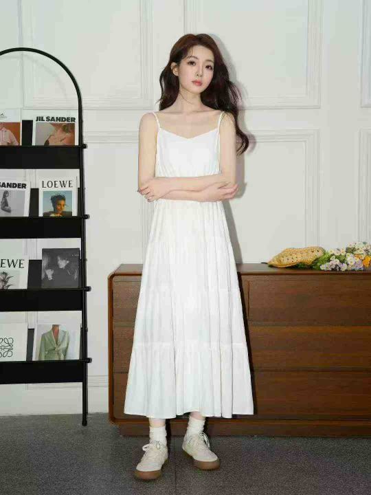 茶歇法式V领收腰设计吊带连衣裙,[爱心]140件左右,款号#1036,码数S-XL,穿70-120斤,万佳档口货,原包装️无瑕疵,[666]实体店品质