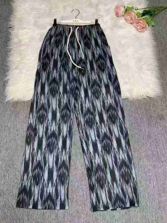 冰丝阔腿裤女夏薄款印花扎染高腰垂感宽松直筒休闲拖地裤160件,独立拉链袋包装,尺码L~2XL,全清福利价6.8元
