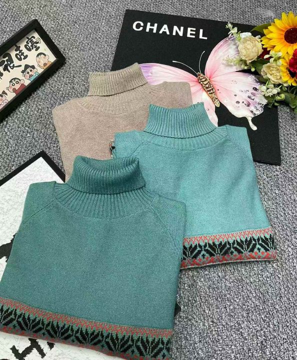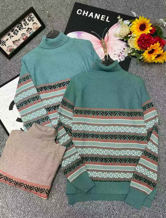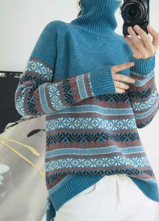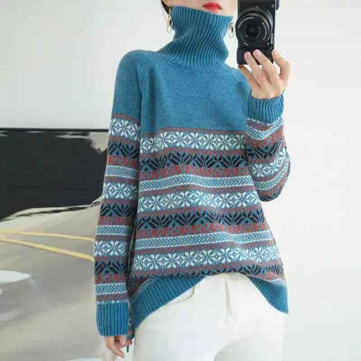 秋冬新款高领提花复古宽松微胖MM韩系慵懒风加厚套头毛...