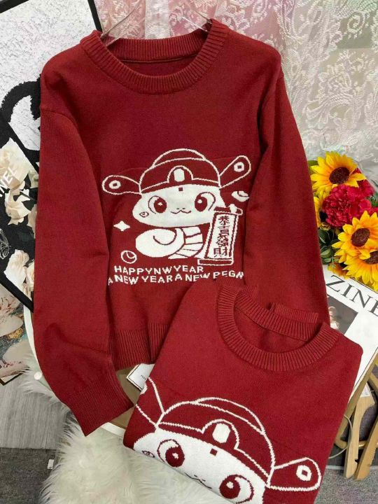秋冬新款大码女装显瘦新年红圣诞卡通提花减龄设计感加厚套头毛衣,独立包装,码数M--2XL码,305件,全清8.9元超低价秒杀!分货加一!