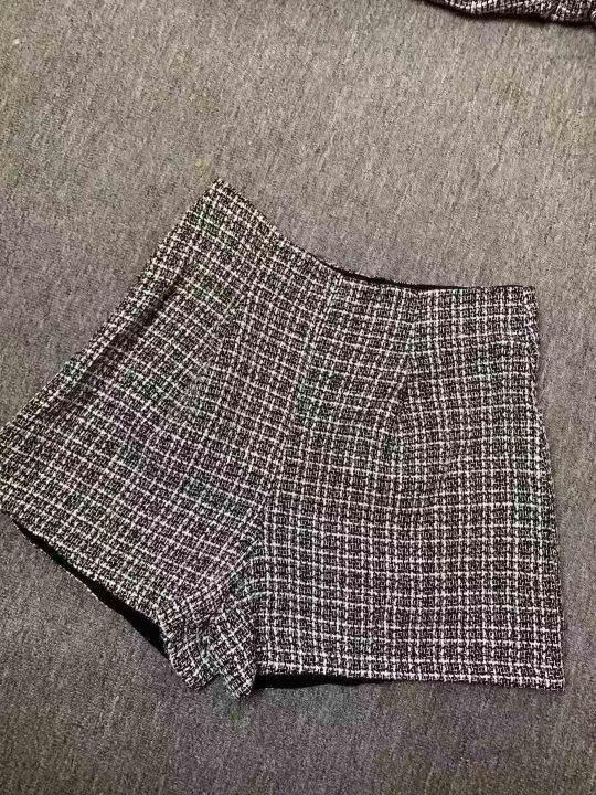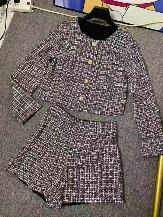 18.8清170套女装小香风外套短裤 两件套 复古圆领长袖格纹小香风粗花呢外套高腰短裤套装 码数XS- L 独立拉链包装