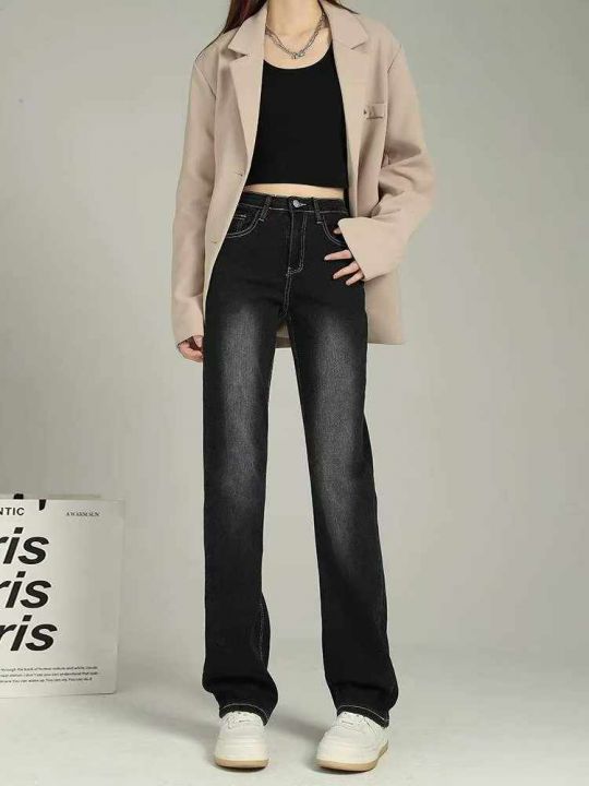 春秋新款高弹力洗水棉网红复古直筒阔腿牛仔裤,独立包...