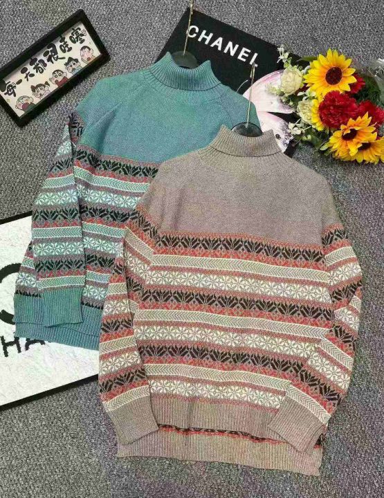 秋冬新款高领提花复古宽松微胖MM韩系慵懒风加厚套头毛...