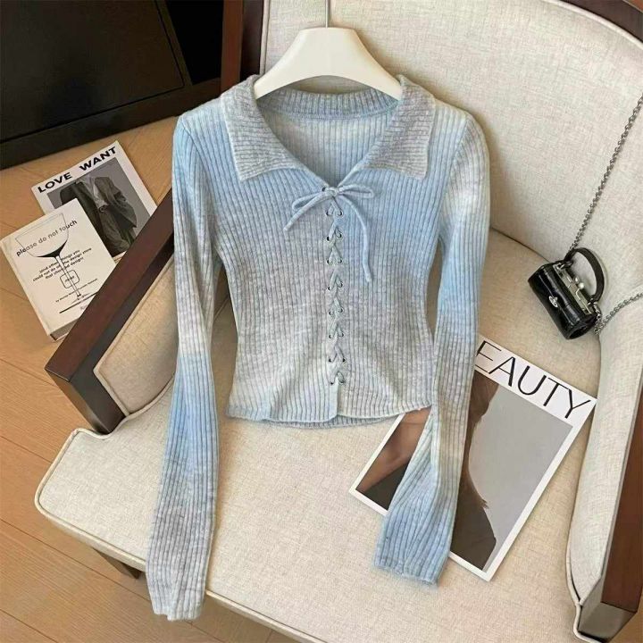 春秋新款复古渐变设计感系绳洋气针织毛衣开衫,独立包...