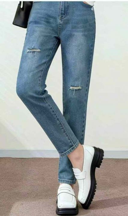 春秋新款破洞设计款高弹力老爹哈伦牛仔裤,独立包装带腰卡,码数27-32码, ...
