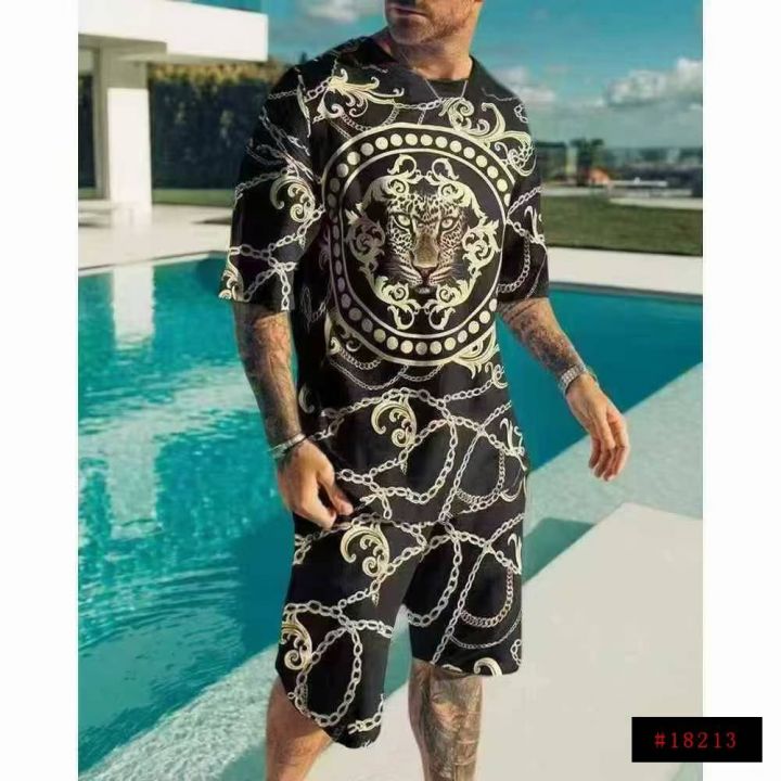9800件,全清8.8,分货➕1,2025夏季爆款跨境男士T恤圆领套装,休闲时尚男士短袖短裤运动男士夏装,独立包装,小整杂款,M-6xL码@_@