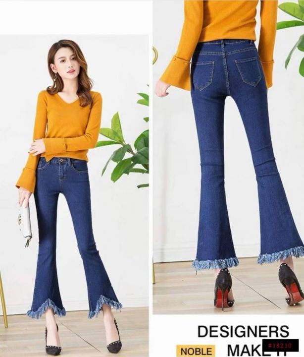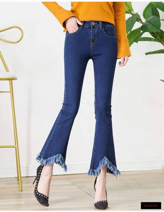 春夏季新款大码女装高腰弹力修身垂感流苏九分牛仔喇叭裤,独立包装带吊牌,码数34--40码,400件,全清5.9元超低价秒杀!分货加一!@_@